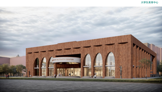 美育中心地上1層,地下局部1層,建筑面積5564.52㎡,設(shè)計特別保留了連續(xù)的弧形拱門元素,與旁邊的老體育館遙相呼應(yīng),也讓廣場人流較多的地方顯得更加活潑。這種拱廊設(shè)計是校園建筑的經(jīng)典手法,既美觀又大氣。整體造型借鑒了歐洲古典羅馬劇場,講究對稱和完整感,高大的拱圈也讓建筑顯得格外挺拔。