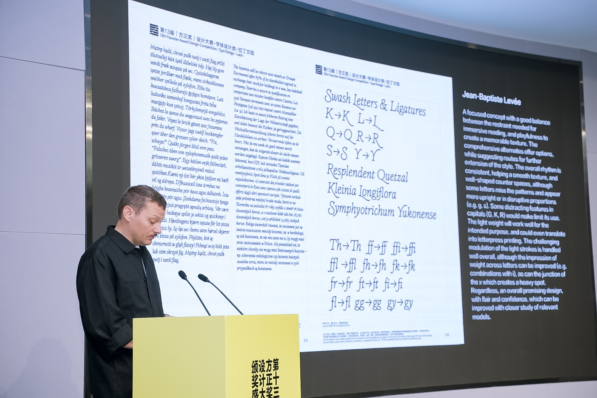 拉丁文組評(píng)審主席Jean-Baptiste Leveé公布字體設(shè)計(jì)類拉丁文組獲獎(jiǎng)名單并點(diǎn)評(píng)