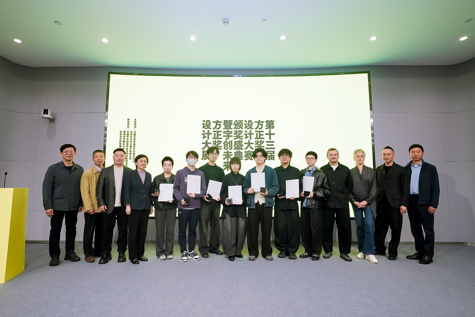 頒獎(jiǎng)嘉賓為第十三屆「方正獎(jiǎng)」設(shè)計(jì)大賽獲獎(jiǎng)?wù)叽眍C獎(jiǎng)