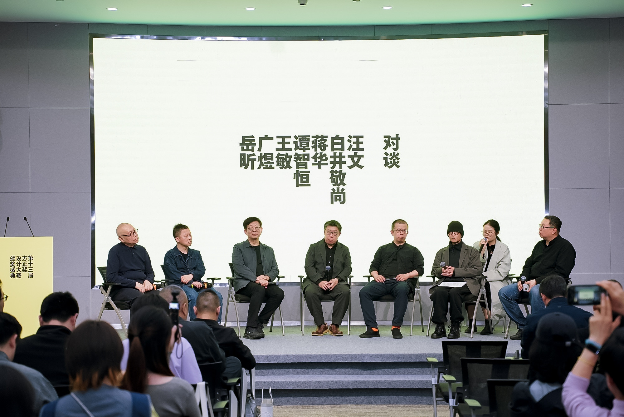 演講結(jié)束后,方正字庫(kù)設(shè)計(jì)總監(jiān)汪文主持了上午場(chǎng)嘉賓對(duì)談,武藏野美術(shù)大學(xué)教授白井敬尚、中央美術(shù)學(xué)院教授王敏、中央美術(shù)學(xué)院教授蔣華、香港知專設(shè)計(jì)學(xué)院副院長(zhǎng)譚智恒、北京元隆雅圖文化傳播股份有限公司藝術(shù)總監(jiān)岳昕、A Black Cover Design聯(lián)合創(chuàng)始人及藝術(shù)指導(dǎo)廣煜,六位嘉賓圍繞字體教學(xué)方法論、人工智能對(duì)平面設(shè)計(jì)及字體設(shè)計(jì)的影響、漢字定制化趨勢(shì)、傳統(tǒng)書寫字體的現(xiàn)代化和商業(yè)化表達(dá)等方面展開深入交流,同時(shí)分享了在本次大賽評(píng)審中的感受和對(duì)參賽者的建議,為參賽者、字體及設(shè)計(jì)愛好者們帶來諸多啟發(fā)。