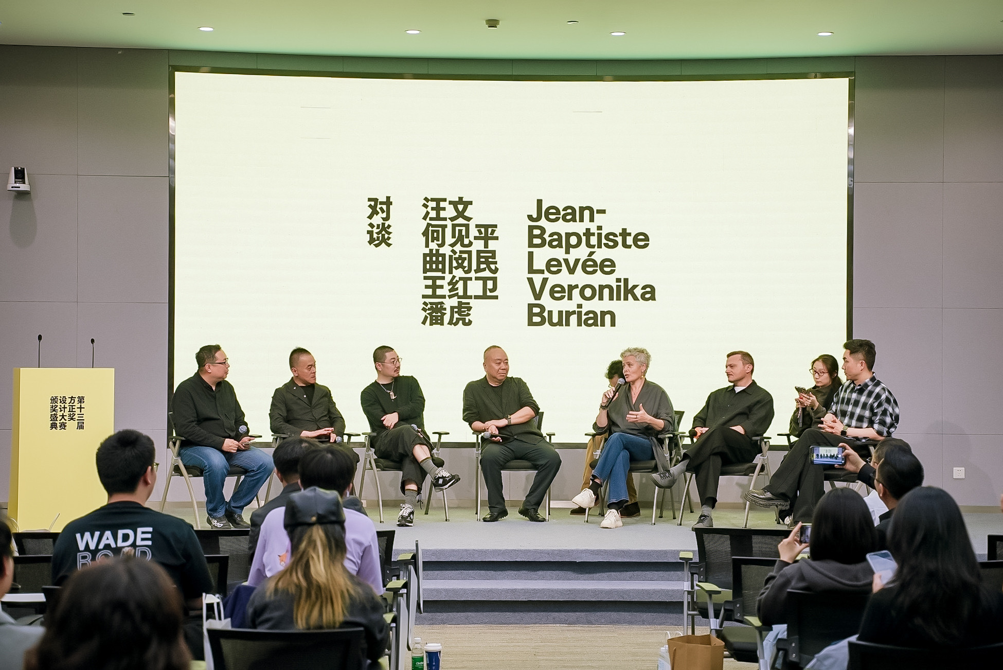 演講結(jié)束后,方正字庫(kù)設(shè)計(jì)總監(jiān)汪文主持了下午場(chǎng)嘉賓對(duì)談,國(guó)際知名設(shè)計(jì)師何見平,江蘇鳳凰美術(shù)出版社設(shè)計(jì)總監(jiān)曲閔民,Production Type 創(chuàng)始人Jean-Baptiste Levée,TypeTogether聯(lián)合創(chuàng)始人Veronika Burian,清華大學(xué)美術(shù)學(xué)院教授王紅衛(wèi),潘虎設(shè)計(jì)實(shí)驗(yàn)室創(chuàng)辦人潘虎六位嘉賓圍繞中西字體審美差異與跨文化設(shè)計(jì)融合、定制字體的現(xiàn)狀等話題展開了熱烈討論。