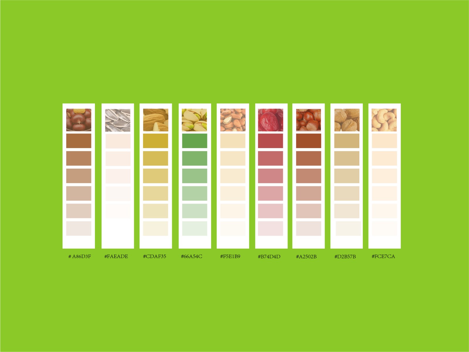 品牌包裝含有九種堅(jiān)果,分別是:板栗、開(kāi)心果、瓜子、杏仁、松子、核桃、開(kāi)心果、大棗、松子。包裝整體采用的是卡通形象的設(shè)計(jì),每一種形象都極易辨識(shí),結(jié)合了產(chǎn)品原生態(tài)的面貌來(lái)設(shè)計(jì),卡通形象 整體采取一種趣味可愛(ài)的表情和動(dòng)作,給人一種歡快愉悅的感覺(jué)。色彩上大膽采用清新明亮的色彩,吸引消費(fèi)者購(gòu)買(mǎi),從老人到小孩皆可食用,無(wú)論是日常食用還是過(guò)節(jié)帶給親朋好友都是不錯(cuò)的選擇。