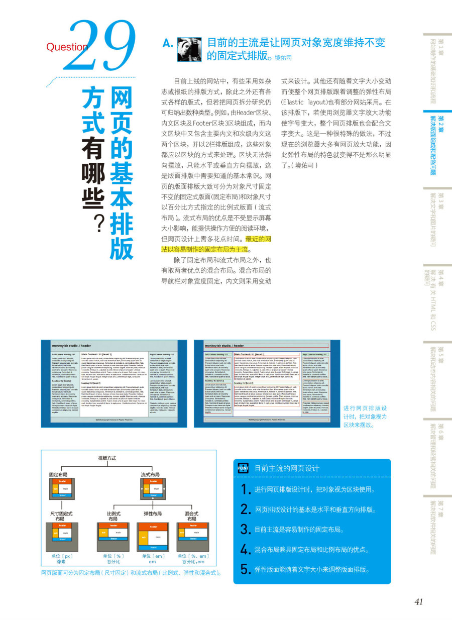 即使是長(zhǎng)期從事網(wǎng)頁(yè)設(shè)計(jì)的您也會(huì)遇到不知該如何設(shè)計(jì),或者想要學(xué)會(huì)更有效率的制作方法的情況。本書(shū)邀請(qǐng)10位網(wǎng)頁(yè)設(shè)計(jì)專家,以FAQ的方式解決設(shè)計(jì)師每天都會(huì)遇到的問(wèn)題。內(nèi)容包括版式設(shè)計(jì)與配色設(shè)計(jì)的規(guī)則是什么,掌握CSS進(jìn)行HTML文件排版的秘訣,以及如何參考線上網(wǎng)站的內(nèi)容架構(gòu)等。書(shū)中講解了許多“不知道就糟了”的Photoshop與Dreamweaver高效率技巧。無(wú)論您是正在學(xué)習(xí)設(shè)計(jì)的初學(xué)者,還是已在職場(chǎng)工作的設(shè)計(jì)師,本書(shū)豐富的內(nèi)容都能助您一臂之力。