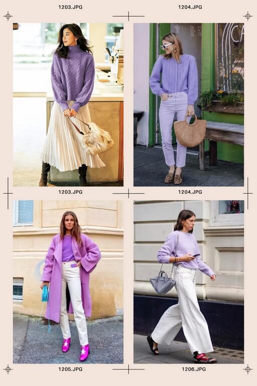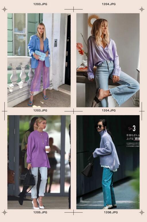 長(zhǎng)春花藍(lán)(Very Peri)雖看起來(lái)冷門,但在翻街拍的時(shí)候,我發(fā)現(xiàn),還是有很多配色可以借鑒的。