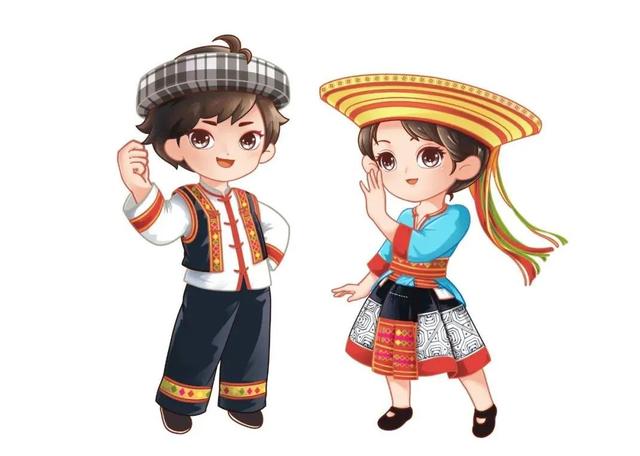 在花瑤語言里,分別是小伙、姑娘的意思。他們以隆回當(dāng)?shù)刈罹哂絮r明特色的花瑤少男少女的化身作為創(chuàng)意來源。