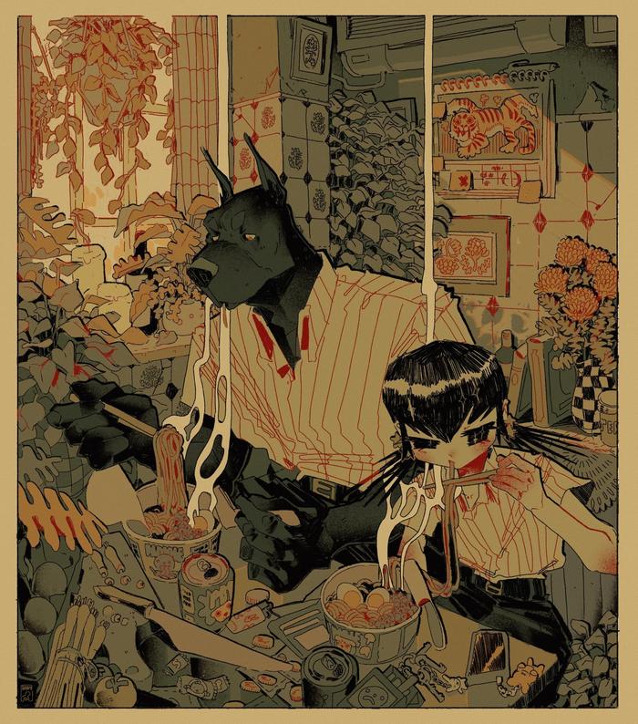 來自英國寶藏插畫師 Squiddy 的插畫作品,經(jīng)常以獸人類為創(chuàng)作主題,畫面用色復(fù)古而大膽 ,畫面沖擊力爆棚!