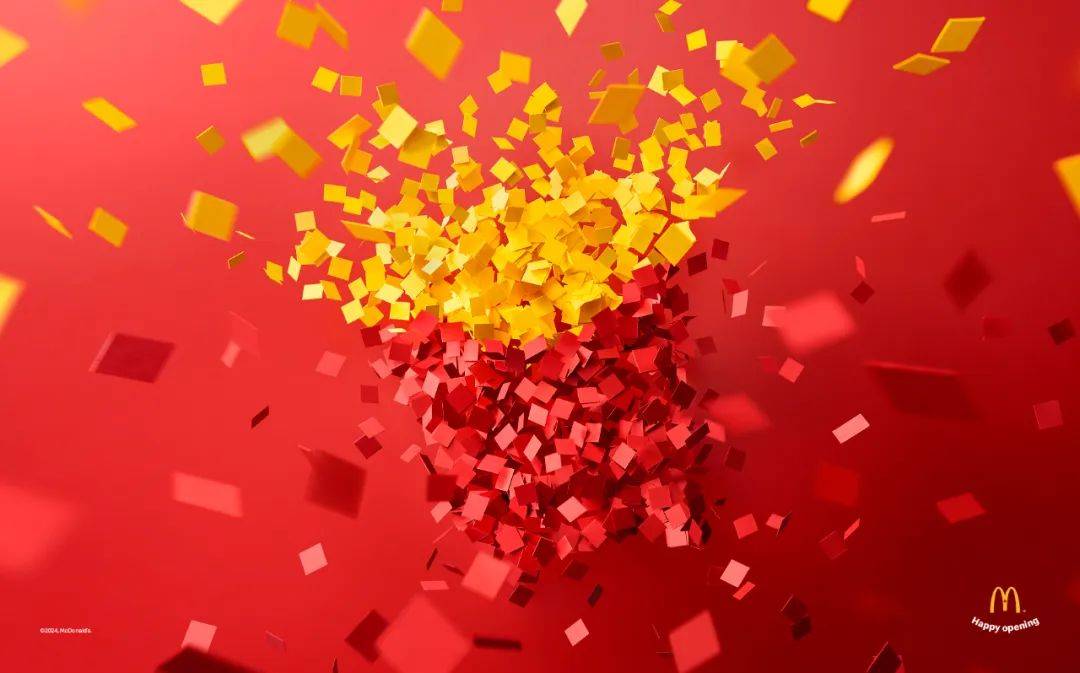 麥當勞計劃至2027年全球新開50,000家餐廳,擴張25%,其中加拿大是重要一環(huán)。為突出新餐廳,麥當勞不僅將其開業(yè)典禮視為擴張的標志,更作為與顧客共慶的盛事,通過特色邀請函展現(xiàn)節(jié)日氣氛和友好體驗。設計機構面臨的技術挑戰(zhàn)是在靜態(tài)圖像中通過麥當勞標志性菜品與爆炸紙屑營造動感,最終利用蹦床和高速攝影技術,成功開發(fā)出適用于各種慶;顒拥囊曈X效果。